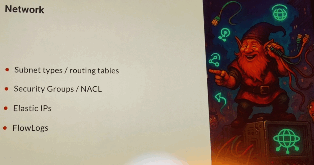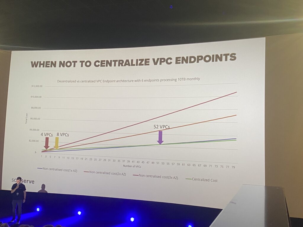 [Daniel] It was a very informative session, but on a very high level. The company had multiple duplicated resources when it comes to networking (VPC in particular) which was a mess to govern and they have decided to centralize networking for easier management. In the QA part after it, someone suggested more improvements to the setup presented which earned a nod from the speaker.