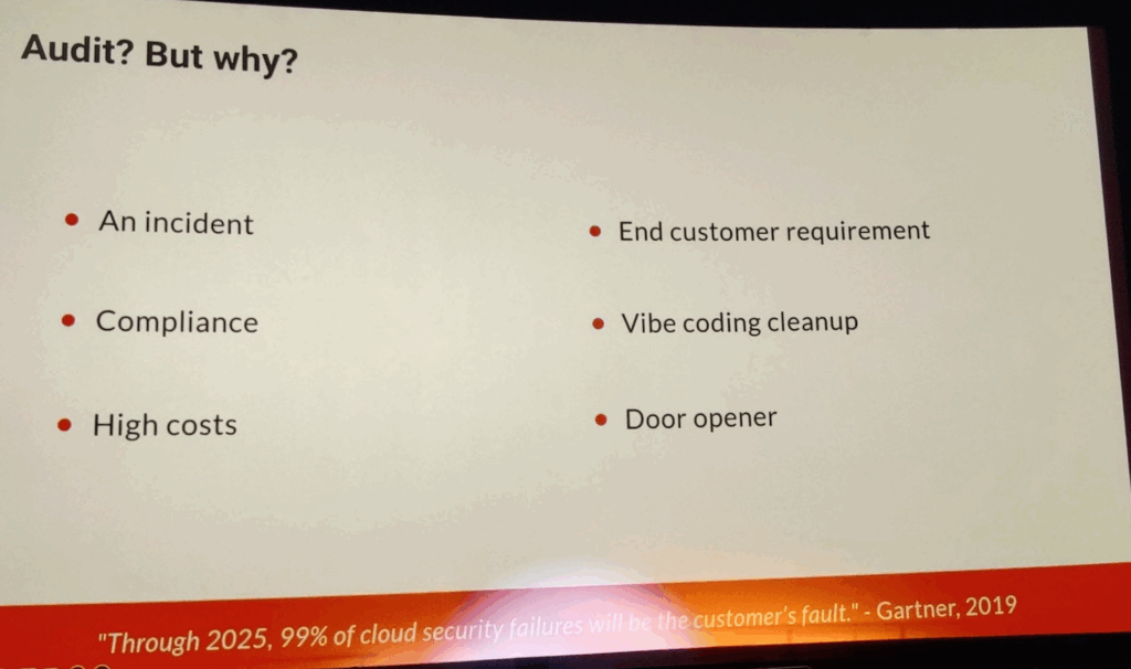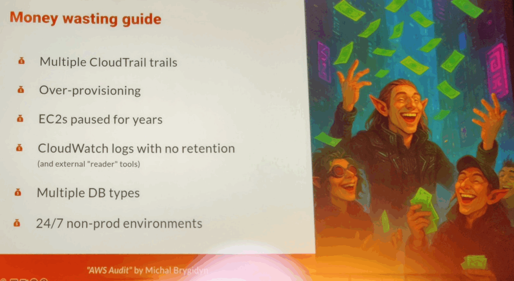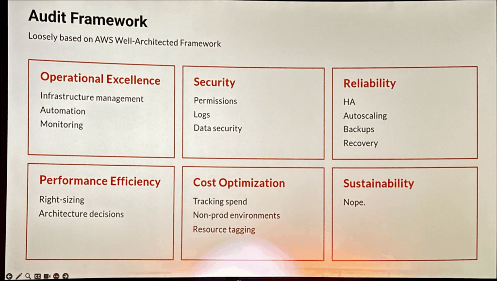 [Adam] Was really curious about this one and ended up pleasantly surprised when the presenter went over areas of audit scenarios. Turns out, we’re faring way better than the “average” companies on the market, and overall it felt like watching a retrospective of our last couple of years making improvements to AWS org setup. Well done!