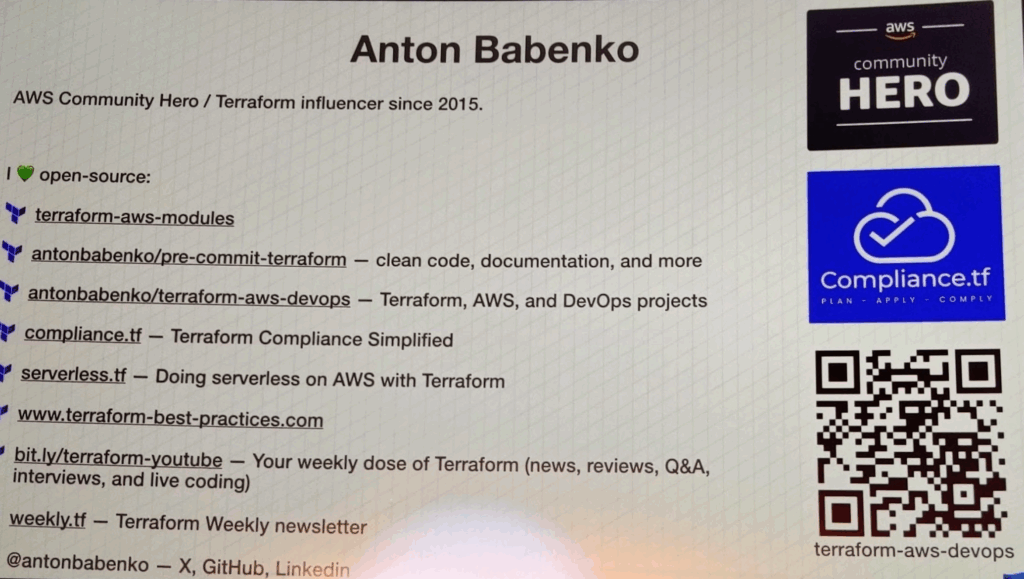 [Adam] Was really surprised to see that Mr Babenko himself had a panel during this conference (due to lack of checking beforehand) and it was a pleasure to watch. Production grade, security hardened Terraform modules are always a tough nut to crack properly, and having access to community forged ones is definitely a wonderful thing to have.